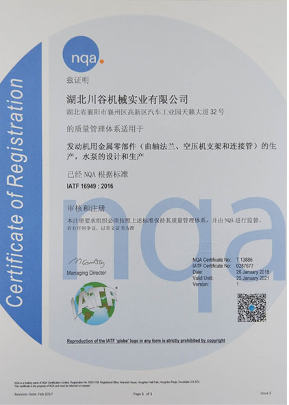 湖北川谷機械實業有限公司是襄陽高新區一家高端制造技術企業,公司自2016年產業升級以來,始終專注于發動機零部件生產、非標生產設備研發和新能源冷卻系統研發核心業務,現已成為區域優秀的非標設備開發商和發動機零部件供應商,并致力于三年內成為行業優秀的新能源冷卻系統方案提供商。